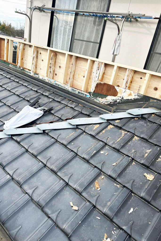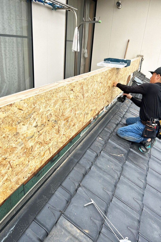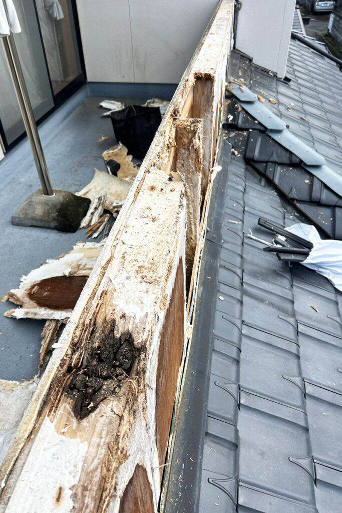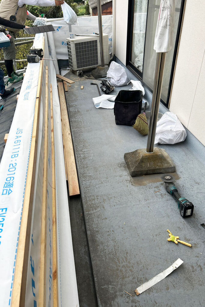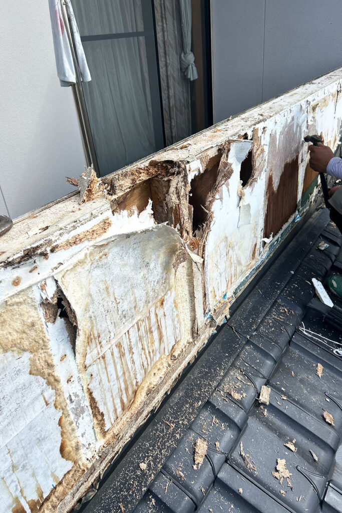 外壁タイルを撤去し、劣化していた下地材の交換と防水処理をゼロからやり直しました。