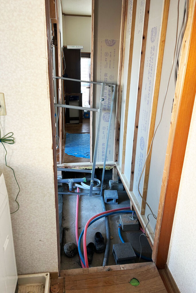 お客様よりご相談をいただき、2階から1階への浴室移設工事を行いました。